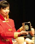 A model was showing the ancient mirror to the audience when it slipped from her hands and fell to the floor.
