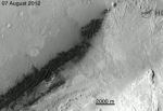 The view looks north, showing a distant ridge that is the north wall and rim of Gale Crater.