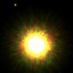 Astronomers have unveiled what is likely the first picture of a planet around a normal star similar to the Sun. Three University of Toronto scientists used the Gemini North telescope on Mauna Kea in Hawaii to take images of the young star 1RXS J160929.1-210524 (which lies about 500 light-years from Earth) and a candidate companion of that star. They also obtained spectra to confirm the nature of the companion, which has a mass about eight times that of Jupiter, and lies roughly 330 times the Earth-Sun distance away from its star. (For comparison, the most distant planet in our solar system, Neptune, orbits the Sun at only about 30 times the Earth-Sun distance.) The parent star is similar in mass to the Sun, but is much younger.