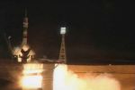 Nasa coverage as a Soyuz TMA-02M spacecaraft carrying American and Japanese astronauts Michael Fossum and Satoshi Furukawa and Russian cosmonaut Sergey Volkov launches from the Baikonur Cosmodrome in Kazakhstan.