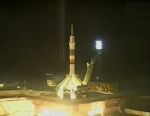 Nasa coverage as a Soyuz TMA-02M spacecaraft carrying American and Japanese astronauts Michael Fossum and Satoshi Furukawa and Russian cosmonaut Sergey Volkov launches from the Baikonur Cosmodrome in Kazakhstan.See more Ed ~ Launch at 21:12 BST