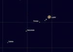 The Galilean moons of Jupiter (Callisto, Ganymede, Europa and Io) are arranged in descending numerical order at 11:40 UT, 21st April 2018.
