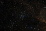 The open cluster is located in the south-eastern part of the constellation, in the direction of a rich star field on the edge of IC 1805 (the Heart Nebula), and appears to be dominated by a magnitude 7.03 white star. With 10x50 binoculars it is visible as a faint fuzzy spot surrounding this star; a 120mm telescope is able to show it is composed of dozens of more stars to magnitude 12. Long exposure photographs can show the filaments of the Heart Nebula. NGC 1027 is a moderately rich cluster and despite its brightness, little studied. Its distance falls on the outer edge of the Orion Arm, in a region adjacent to an OB association known as Camelopardalis OB1. Close by, within a few tens of parsecs, are the the two clusters of Tr 2 and Tr 3. Its age is estimated at 160 million years and is therefore an evolved cluster, free of any particularly massive spectral class O and B stars, which have already completed their life cycle. The HR diagram of the stars of this cluster show it to be rather scattered and not very homogeneous, lacking stars on the main sequence. The declination of this cluster favours northern observers in the northern hemisphere, with the open cluster being circumpolar at mid-low latitudes. From the southern hemisphere the open cluster is quite low and is not observable from areas far from the tropical zone. The best time to observe this object is in the evening sky is between October and March.