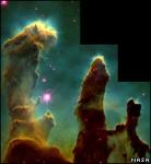 The Chandra observations did not detect X-rays from any of the so-called evaporating gaseous globules, or EGGs. The EGGs are dense, compact pockets of interstellar gas where stars are believed to be forming. The lack of X-rays from these objects may mean that most of the EGGs do not contain enshrouded stars. However, infrared observations have shown that 11 of the 73 EGGs contain infant stellar objects and 4 of these are massive enough to form a star. The stars embedded in these 4 EGGs might be so young that they have not generated X-rays yet and one of them (E42) - estimated to have about the mass of the Sun - could represent one of the earliest stages of evolution of our nearest star. The Sun was likely born in a region like the Pillars of Creation. The pillars and the few stars forming inside them are the last vestiges of star formation in the Eagle Nebula, also known as M16, which peaked several million years earlier. This contrasts strongly with the active star forming regions in other clusters such as NGC 2024, where Chandra sees a dense cluster of embedded young stars. The results were published in the January 1st issue of The Astrophysical Journal and the research team, led by Jeffrey Linsky of the University of Colorado, includes Marc Gagne and Anna Mytyk (West Chester University), Mark McCaughrean (University of Exeter) and Morten Andersen (University of Arizona)