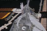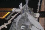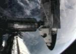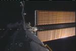 The astronauts did not see any obvious signs of damage to the reinforced carbon panels and proceeded to using the shuttle's robot arm to pull a new solar array truss segment from Discovery's cargo bay for handoff to the station arm. The spacer segment will be attached to the end of the station's main truss today.