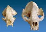 This image released by the Institute of Vertebrate Palaeontology and Paleoanthropology in Beijing shows front views of a new fossil panda skull, Ailuropoda microta, from Jinyin Cave, Guangxi, China, left, and a living giant panda skull, Ailuropoda melanoleuca, right. The first skull of the earliest known ancestor of the giant panda has been discovered in China, researchers report. Discovery of the skull, estimated to be at least 2 million years old, is reported by Russell L. Ciochon in the Tuesday June 19, 2007 edition of Proceedings of the National Academy of Sciences. Credit Institute of Vertebrate Palaeontology and Paleoanthropology, Beijing